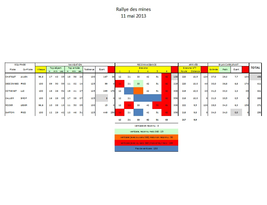 Avec des conditions météorologiques difficiles et les nécessités de "déroutement", tout le monde à fait preuve d'une précision des temps de navigation remarquable.